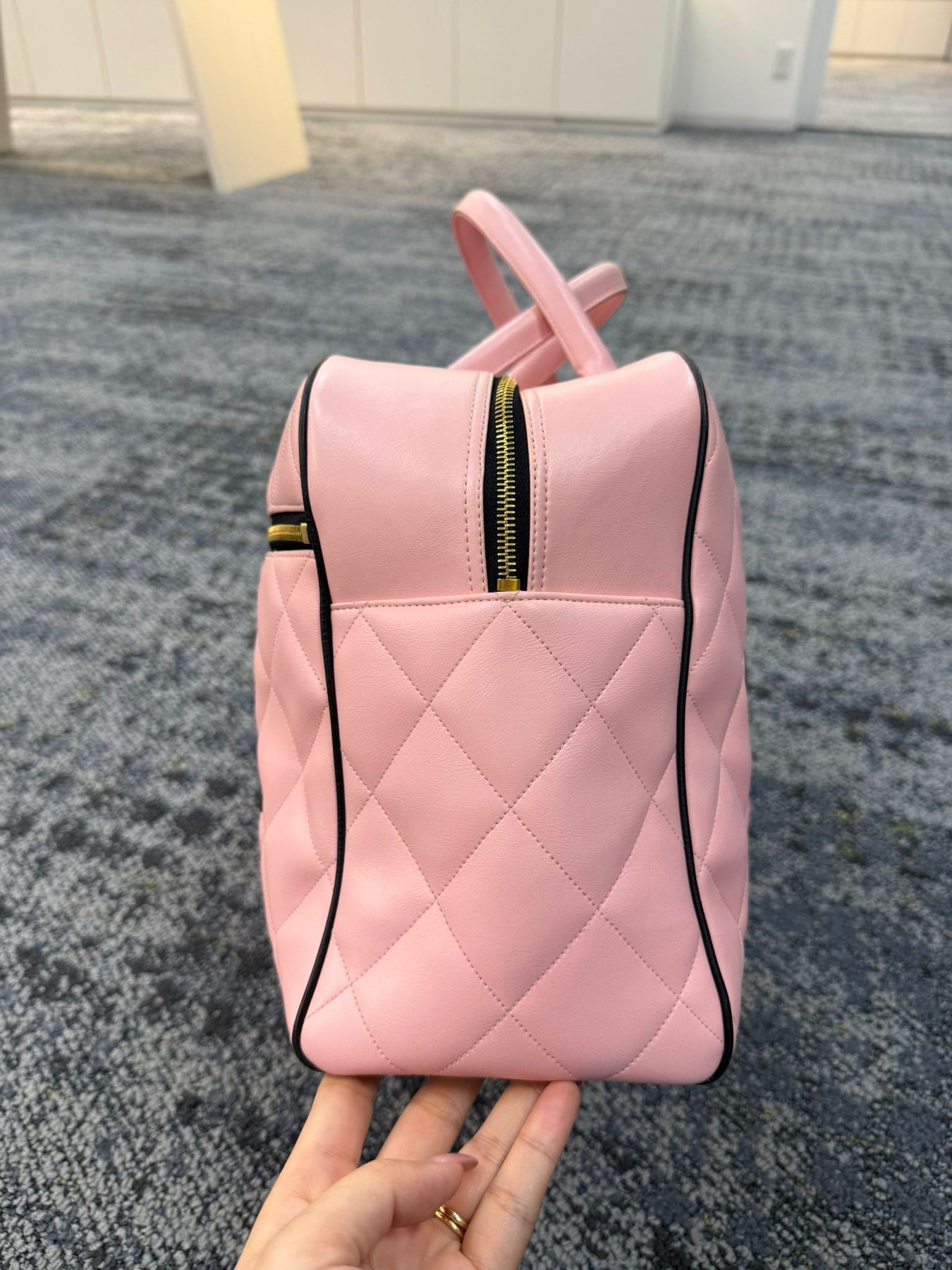 Measurements: 19in. W (at base) x 9.5in. H x 7in. D, strap drop is 6 inches