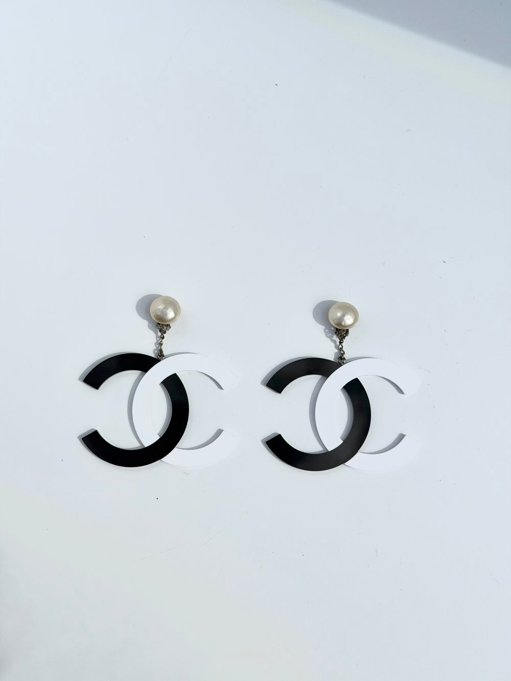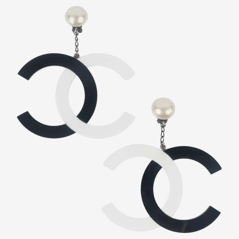 Chanel 1996 Black & White Jumbo Pearl Clip Earrings