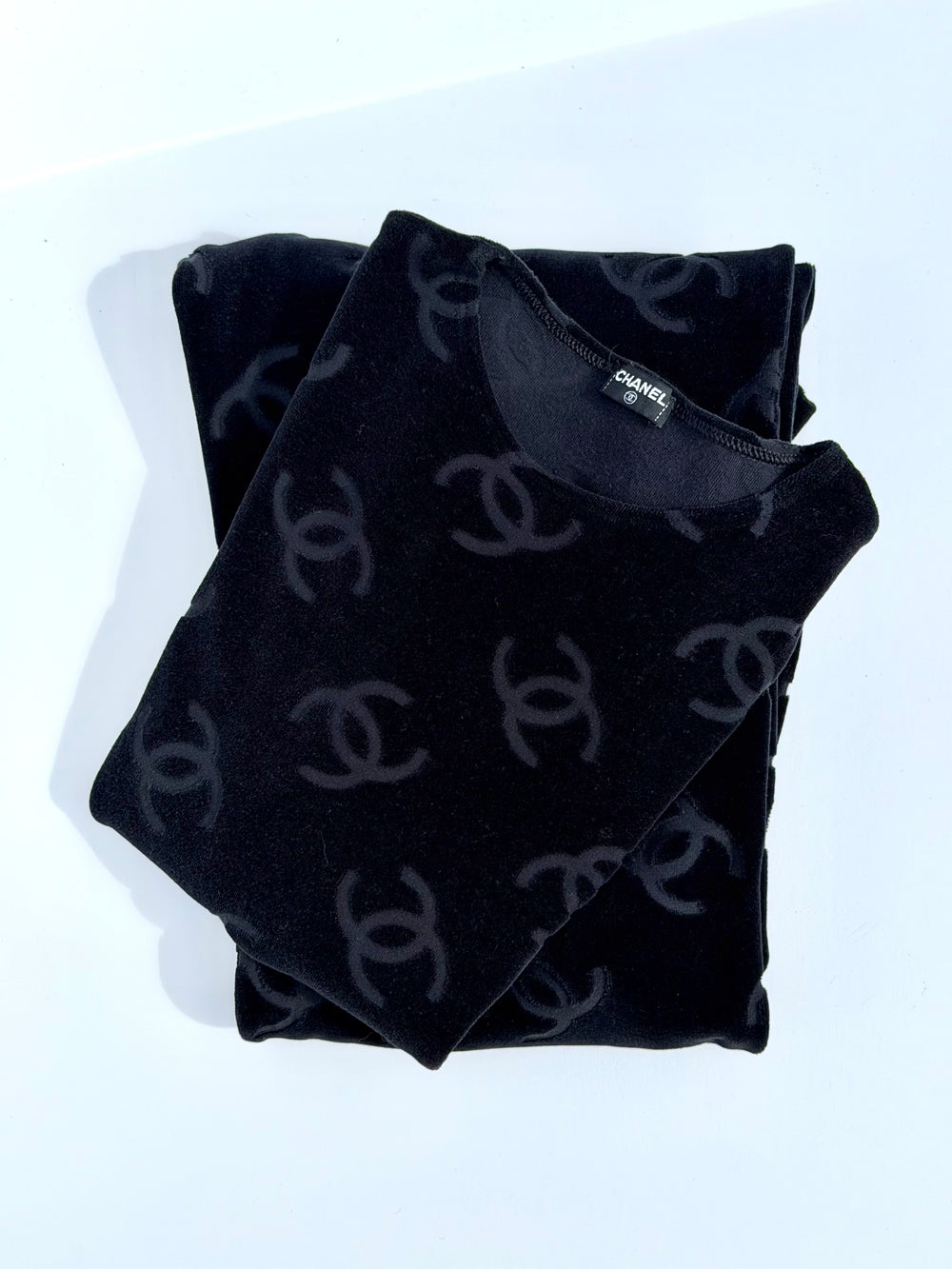 Chanel Spring 1996 Black Velour Top & Bottom Set